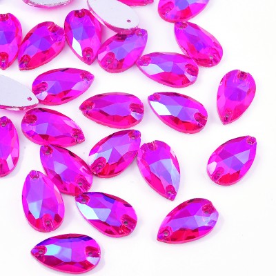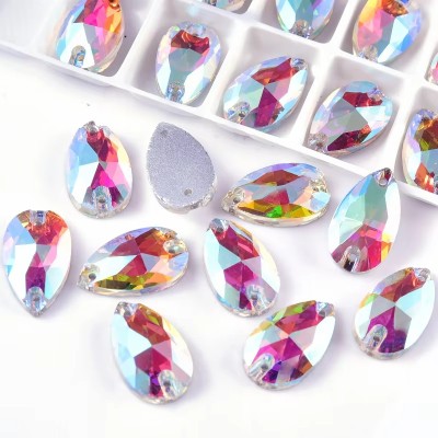 Factory Hot Sale 3A Teardrop Shape AB Color Fluorescent Glow Gems Glass Sew on Rhinestones for Performance Costumes