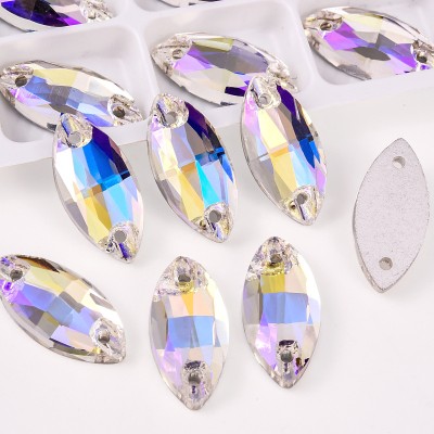 Hot Sale Normal Color Series Navette Shape Glass Crystal Sew on Rhinestone for Performance Costumes